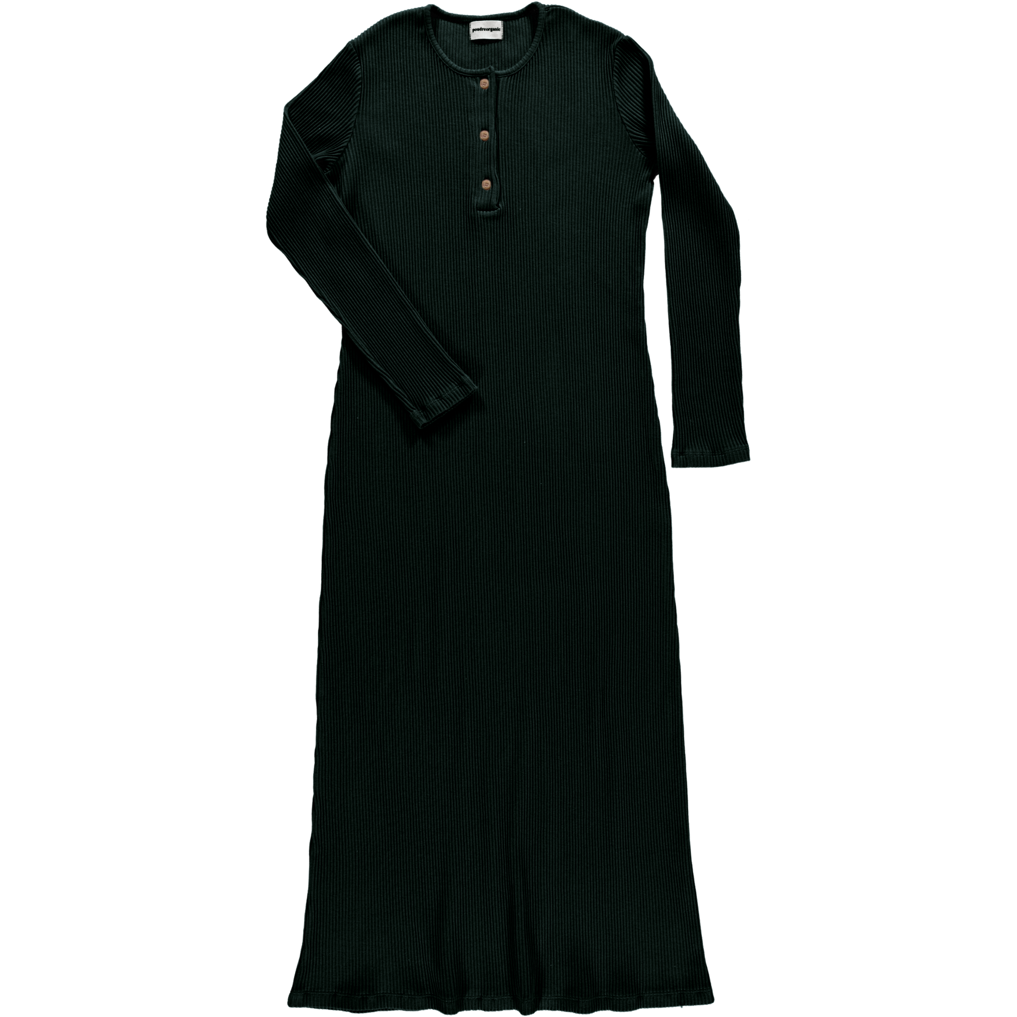 Robe longue à manches longues. Ultra-confortable et allonge la silhouette. Col rond, 3 boutons. 100% coton issu de l'agriculture biologique. Made in Portugal.