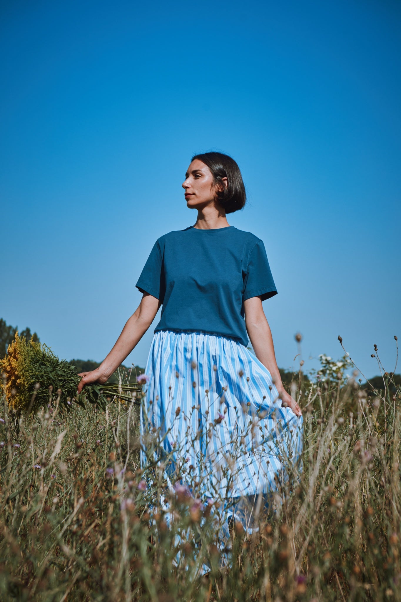 Each piece is made from organically grown cotton, unbleached before dyeing to avoid the use of chemicals. The color may therefore vary according to the bath.